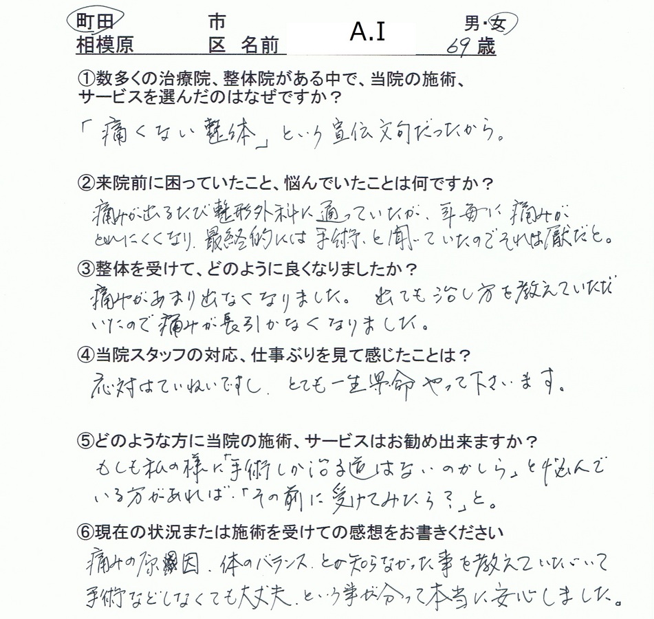 数多くの治療院、整体院がある中で、当院の施術、サービスを選んだのはなぜですか?
