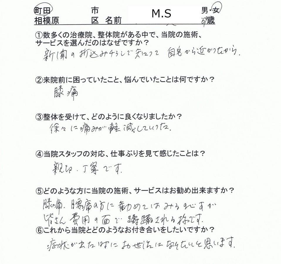 常に痛かった膝の痛みが出にくくなり良かったですね!
