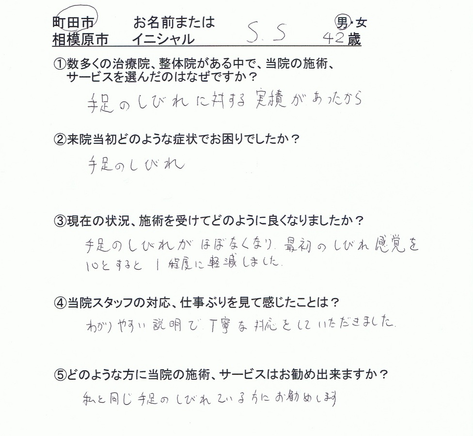足のシビレ 改善症例
