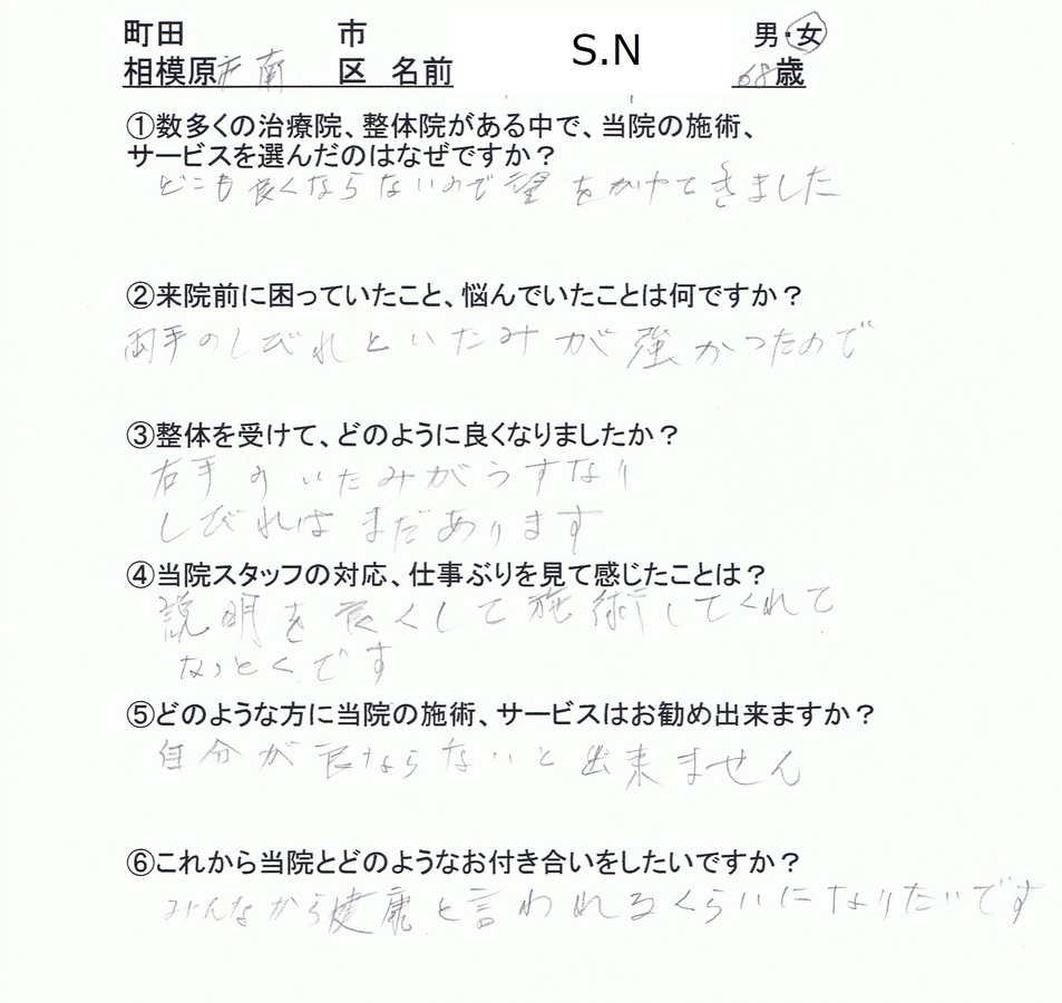 相模原市 68歳 女性の体験談