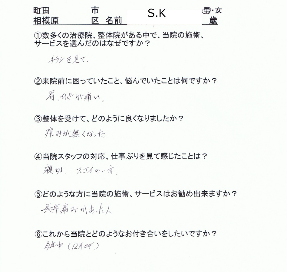 <町田、相模原で慢性的な腰痛、膝痛、足のシビレなら、町田街道沿いのからだ回復整体町田へ>
